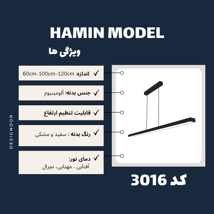 چراغ خطی آویز ریموتی هامین | کنترل نور و فضا فقط با یک کلیک